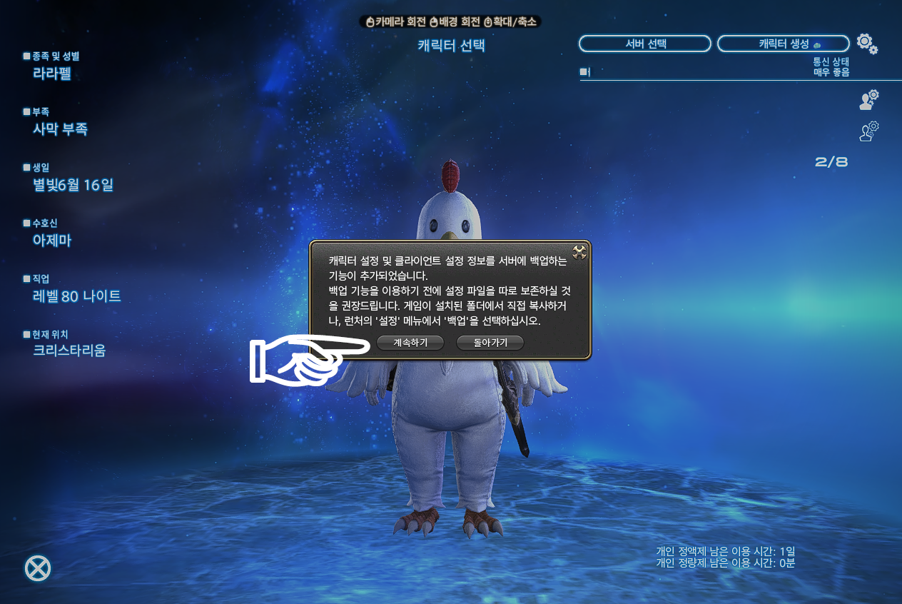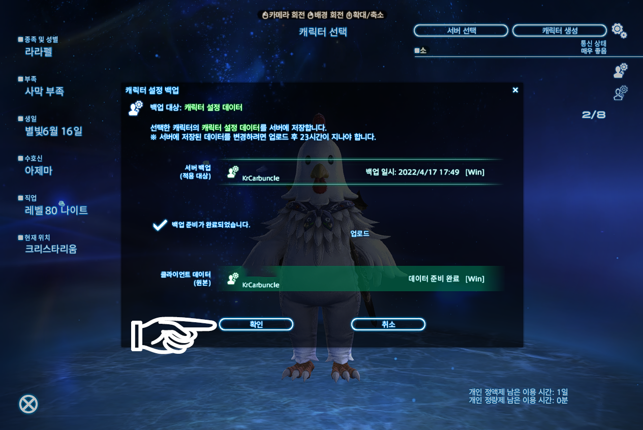 이외에도 pc방 자주 가는 파판14유저라면 허드 백업은 미리미리 하자.