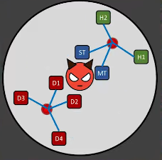 ②대각선 방향 기둥 2개에 각각 탱힐, 딜러 4명씩 연결